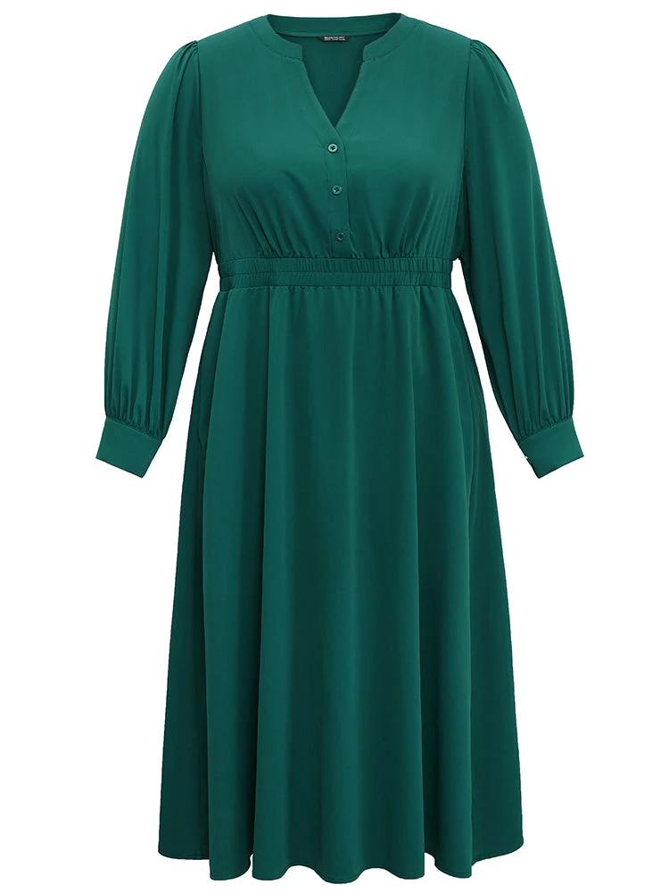 Anti-Wrinkle Shirred Gathered Notched Dress
