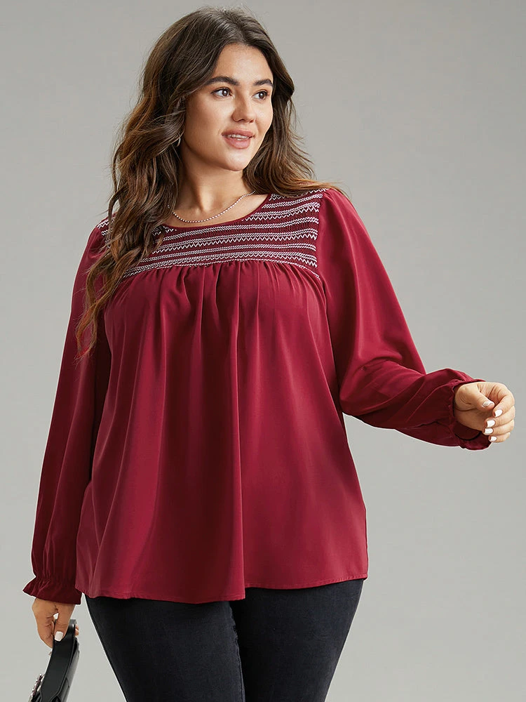 Details: Ruffles,Patchwork,Shirred,Gathered,Elastic cuffs