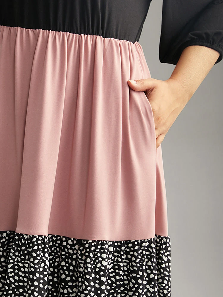 Details: Pocket,Elastic Waist,Patchwork,Printed,Elastic cuffs,Gathered