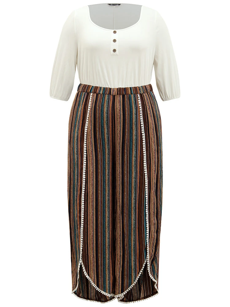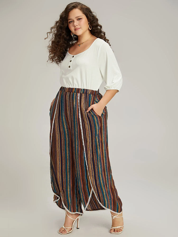 Details: Pocket,Button,Elastic Waist,Patchwork,Elastic cuffs,Printed,Arc Hem